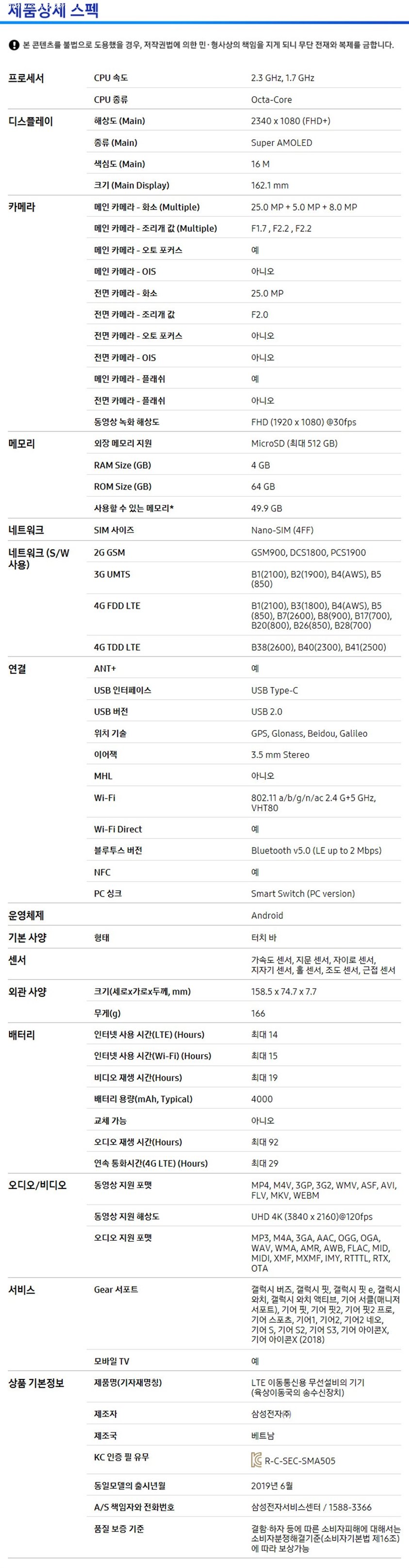 신선한 삼성전자 갤럭시A50 64G 자급제폰의 제품구성