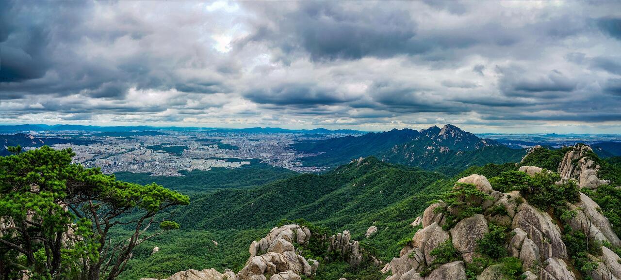 용문산과 인천 앞바다까지 보이는 맑은 사진으로, 지쳐가는 사람들에게 조금이라도 위안이 되었으면 하는 마음으로, 7월 말에 도봉산에 올라 서울시를 담은 사진으로 파노라마를 만들어보았다.