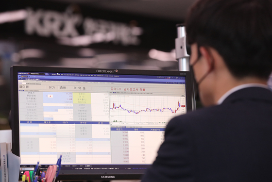 지난 3월 11일 부산 한국거래소 운영실에 관계자가 신규 공매도 과열 종목으로 지정된 코스피 파미셀 종목 시세를 보고 있다. 뉴스1