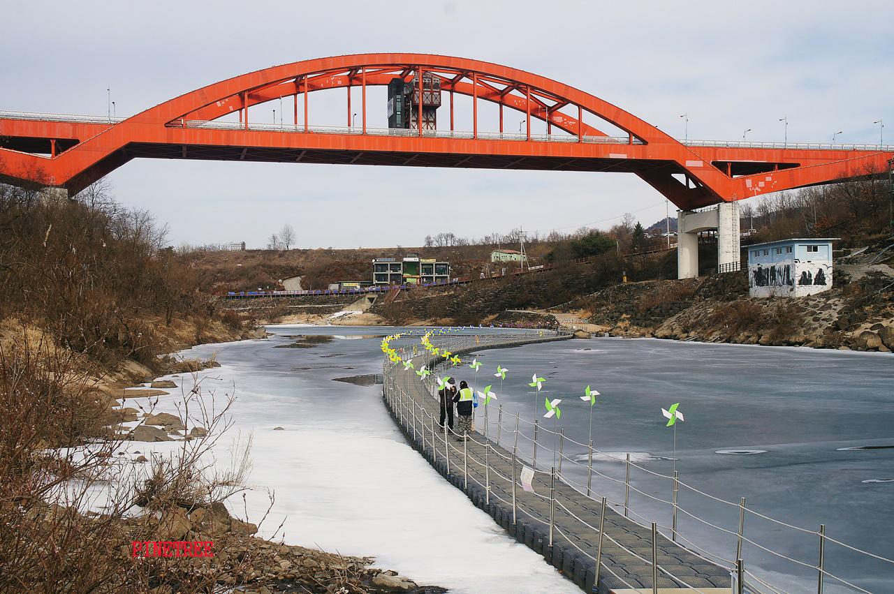 유네스코 세계지질공원으로 인증받은 한탄강의 절경을 물위에 마련된 물윗길(부교)을 걸으며 한탄강을 가까이 느낄 수 있는 계기로 특히 절벽에 가까운 협곡의 웅장함과 현무암질 용암에서 분