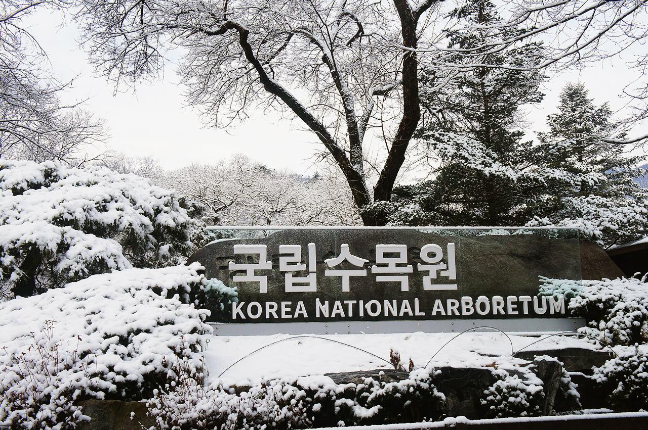 3월1일에 적잖은 눈이 내렸습니다 특히 강원 영동 지방엔 생활의 불편을 느낄 정도로 많이 왔다는데 혹시나하고 국립 수목원을 찾았는데 매우 타이밍을 잘 맞춘 출사였습니다. 제가 둘러본 길을