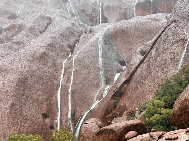 호주가 몇 일 째 내린 폭우로 물난리를 겪고 있지만 지구의 배꼽으로 불리는 호주 북부 바위산 울룰루에는 이번에 내린 비로 곳곳에 폭포가 흘러내리면서 장관을 연출하고 있다고 외신이 전했다. 건조한 지역으로 좀처럼 비가 내리지 않지만 이번에 비가 내리면서 폭포가 생긴 것이다. 호주 북부에 위치한 울룰루-카타츄타 국립공원 지역에는 46mm 이상의 비가 내렸다. 호주 정부는 안전과 환경보호, 그리고 이곳을 신성시 여기는 원주민의 요구에 따라 지난 2019년 10월 26일 부터 울룰루-카타츄타 국립공원의 등반을 영구 금지한 바 있다.