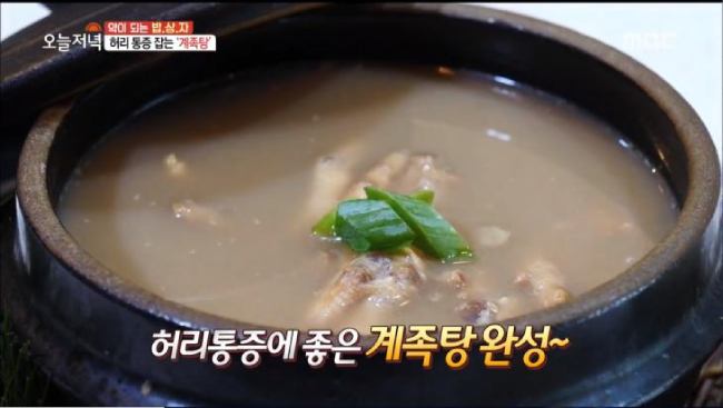 계족탕은 허리와 어깨, 목, 무릎 등의 관절 및 뼈를 튼튼하게 한다. 실제로 닭발에는 우유보다 7배 많은 칼슘이 들어있고 콘드로이친, 콜라겐 성분이 함유되어 연공과 인대, 근육, 뼈를 튼튼하게 만든다.