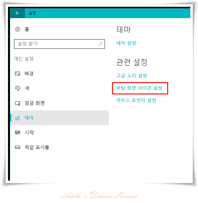 개인설정 - 테마 - 바탕화면 아이콘 설정