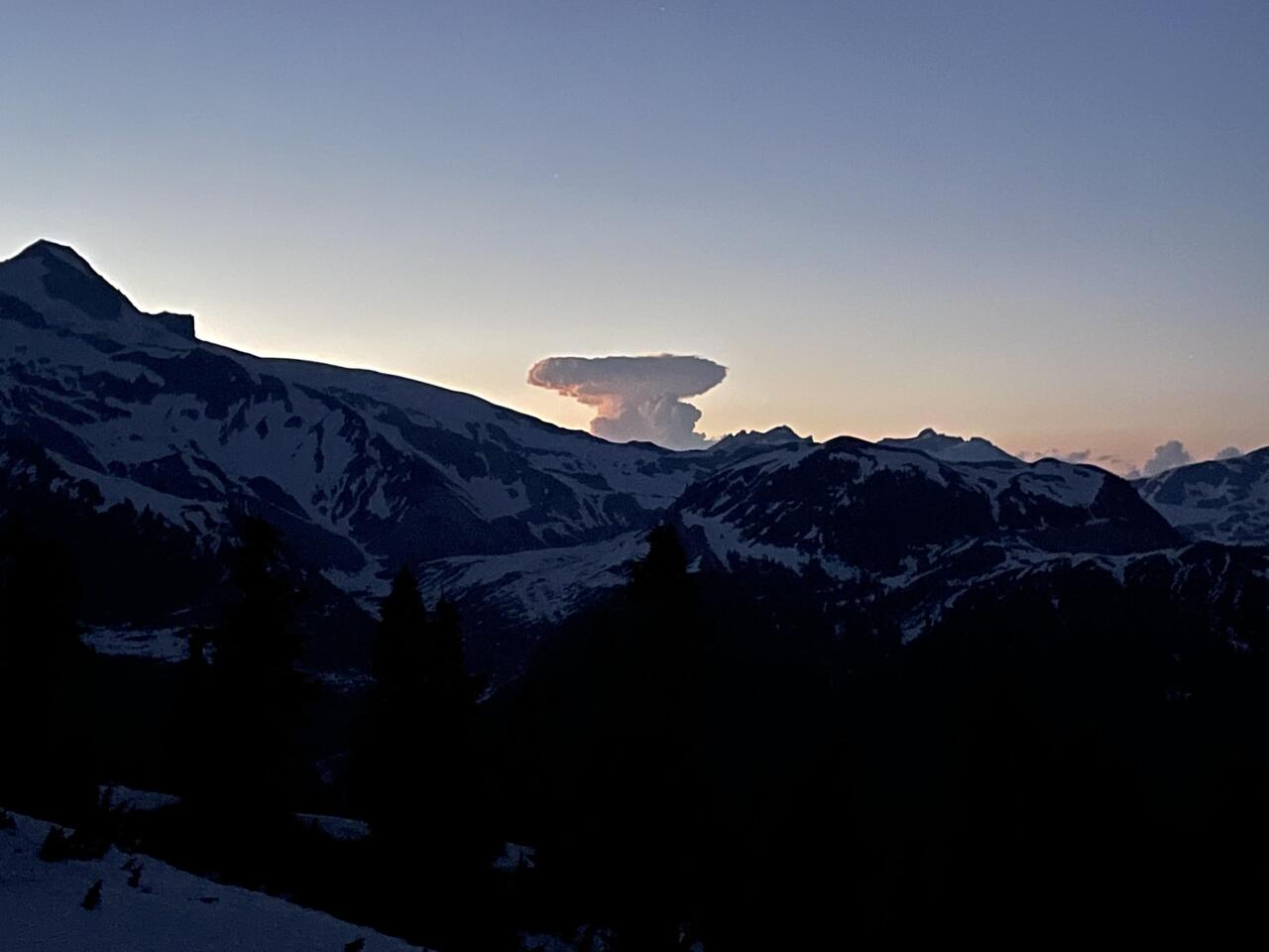 흰 눈덮인 산이라 더우기 해가 늦게지는 여름이라 10시가 넘어도 하늘을 포함해서 온통 세상이 밝다.
