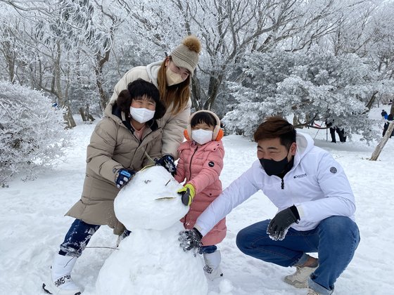 “제주에서 보는 눈꽃은 더욱 황홀한 듯합니다. 코로나 때문에 답답했는데 가족들과 새하얀 눈을 보니 살 것 같아요.”