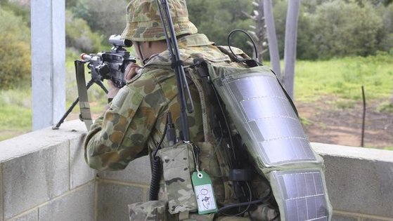 호주 육군의 부착형 태양광 패널. 전투나 이동하면서 전기를 충전할 수 있는 장비다. [호주 육군]