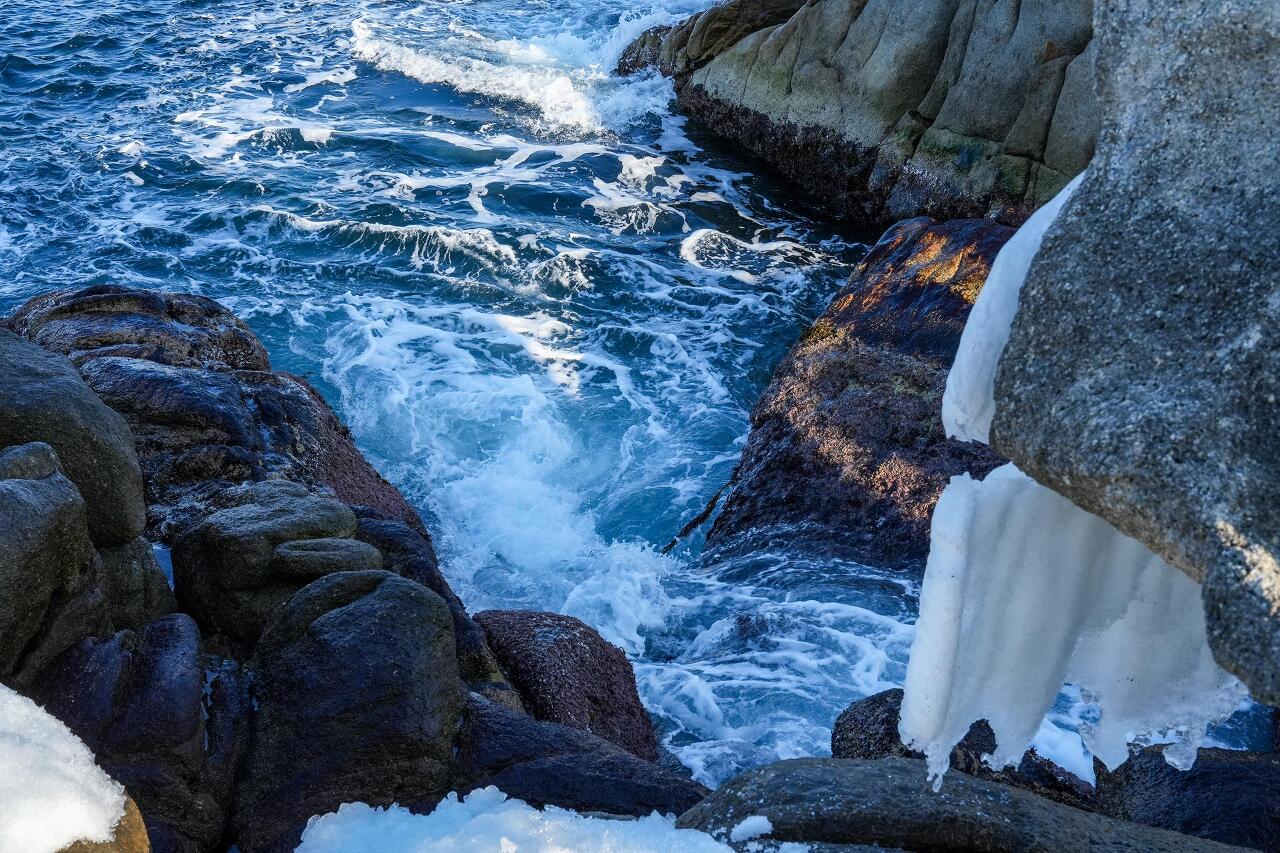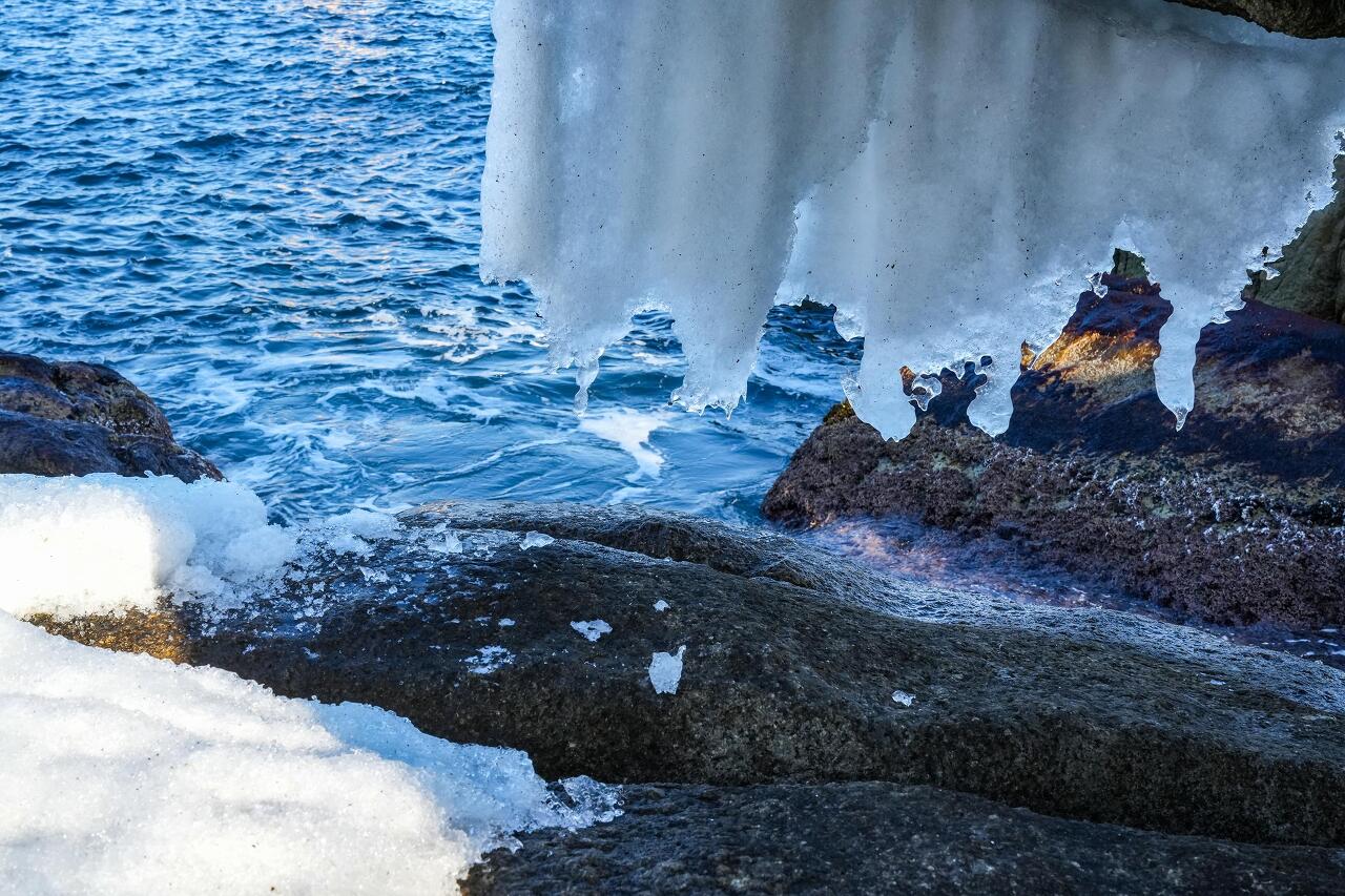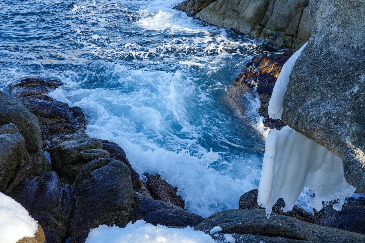 수뭇개바위에서 보는 바닷물 고드름
