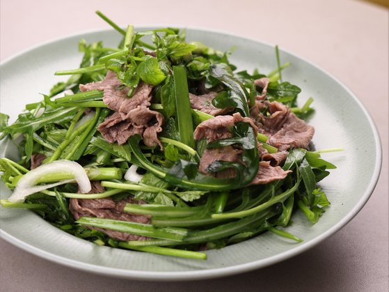 재료를 각각 손질해 맛과 식감을 극대화한 샤부샤부 미나리 샐러드. 사진 쿠킹