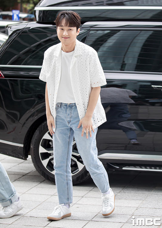 이날 가수 이찬원이 출근길에 포즈를 취하고 있다.