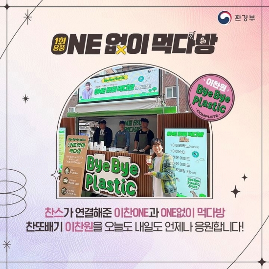 지난 7일 환경부 공식 계정 SNS에는 "ONE 없이 먹다방의 마지막 주자, 이찬원!"이라는 문구와 함께 이찬원의 영상 및 사진이 게재됐다.