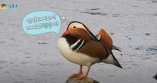 정원오 성동구청장은 최근 페이스북에 “‘새 박사님’이라는 별칭으로 친숙한 윤무부 박사님에게 중랑천 용비교 하부 용비쉼터 인근에 천연기념물인 원앙이 한 무리로 나타났다는 연락을 받았다”고 알리며 “화합과 사랑의 상징인 원앙이 성동구에 무리를 지어 나타났다니 반가운 일이 아닐 수 없다”고 했다.