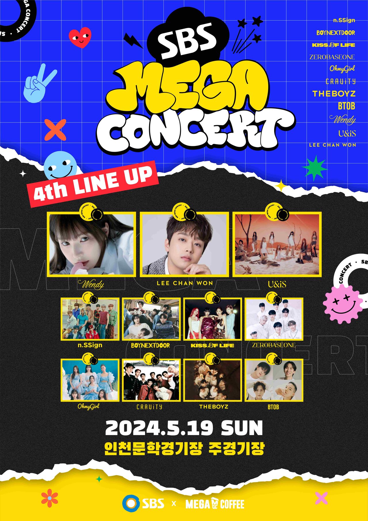 이번 4차 라인업 공개를 통해 비투비, 더보이즈, 웬디, 오마이걸, 이찬원, 제로베이스원, 보이넥스트도어, 크래비티, 엔싸인, 키스오브라이프, 유니스 등 'SBS MGEA 콘서트' 무대에 설 11개 팀이 베일을 벗었다. SBS는 "'SBS MEGA 콘서트'를 통해 그 어느 때보다도 화려하고 다양한 퍼포먼스가 펼쳐질 예정"이라며, "문학경기장 초대형 무대를 가득 채울 5월 콘서트에 많은 관심을 부탁드린다"고 당부했다. 화려한 라인업으로 K-POP 팬들의 기대감이 한껏 높아진 'SBS MEGA 콘서트' 공식 티켓에 대한 자세한 정보는 메가MGC커피 홈페이지 및 모바일 앱을 통해서 확인할 수 있다. 강선애 기자 sakang@sbs.co.kr