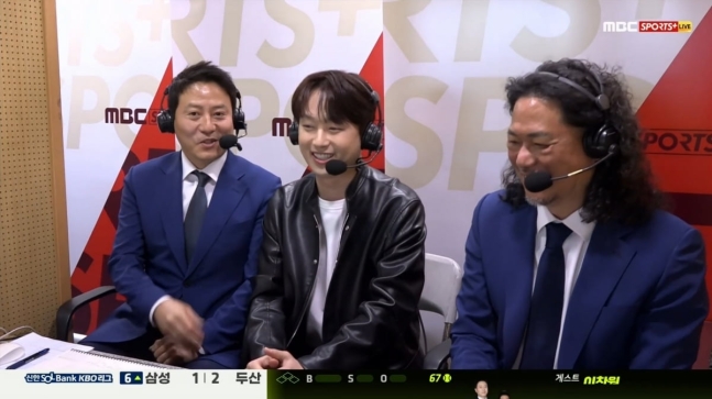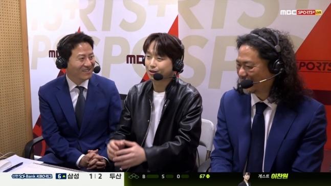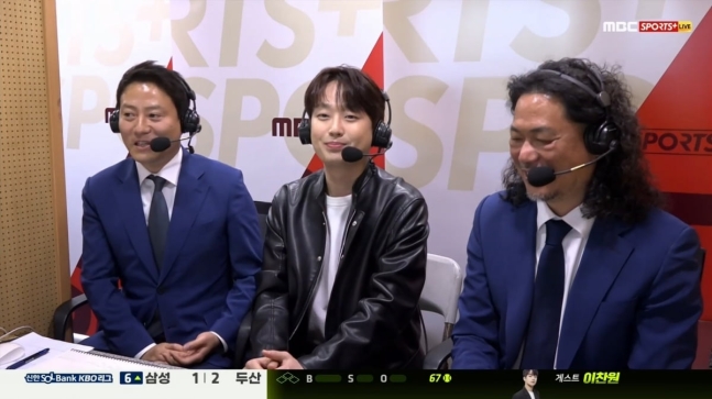 정병문 캐스터는 "이찬원 씨가 경기장 찾은 모습을 보고 어려운 부탁을 드렸는데, 와주셔서 감사드린다"고 인사했다. 이찬원은 "초대해주셔서 감사드린다. 중계 화면을 많은 친구들이 확인하고 다들 연락왔다"며 반가워했다.