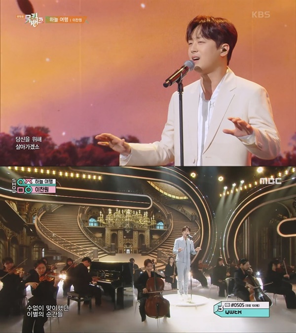 | ▲ KBS <뮤직뱅크>(사진 맨위), MBC <쇼 음악중심> 1위를 차지한 이찬원 |