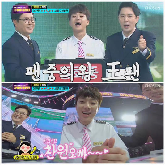 장민호는 "이 비행기는 곧 출발하겠으니! 승객 여러분들께서는 간단한 야식과 편한 자세를 준비해 주시고 TV앞에 앉아주시기 바랍니다! 저희비행기 곧 이륙합니다!"라는 멘트에 이어 MC김성주는 "코로나 19로 인해서 여행을 못떠나시는 시청자분들을 위해서 음악으로 떠나는 세계여행! '안방에서 즐기는 여행송' 특집으로 준비했습니다!"라며 그동안 다녔던 여행지중 기억에 남는 여행지에 대해 묻자 이찬원은 "고등학교 2학년때 경북 성주에 있는 계곡에 여행을 갔습니다"라며 스크린에 친구들과 함께 갔던 사진 한장이 나오자 붐쌤은 "자! 이찬원을 찾아라! 이찬원을 찾아라!"라고 외쳤고, 김성주는 "이찬원이 없는데 지금? 찬원이가 안보이네...."라고 말하자 김희재가 "저기 두번째가 찬원이네! 왼쪽에서 두번째!"라 말하니 이찬원은 "왼쪽에서 두번째가 저 맞습니다!!"라 공개했고 장난꾸러기 붐은 "혼자 폭포 벌칙을 받았나요?"질문하자 이찬원은 "제가 이마가 넓어가지고..."라며 그 당시를 추억하게 했다.