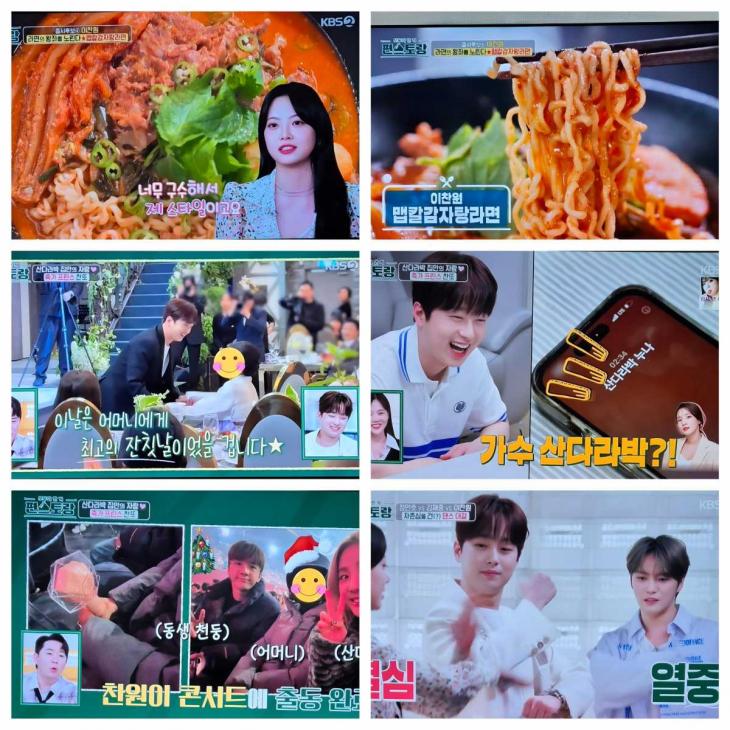 9월 27일 KBS 편스토랑에서는 오랜만에 모습을 보인 이찬원이 감자탕을 얼큰하게 끓인 베이스를 바탕으로 찬또 감자탕 라면을 선보이며 편스토랑 토탈 7번째 우승을 거머쥔 모습이 전파를 탔다.