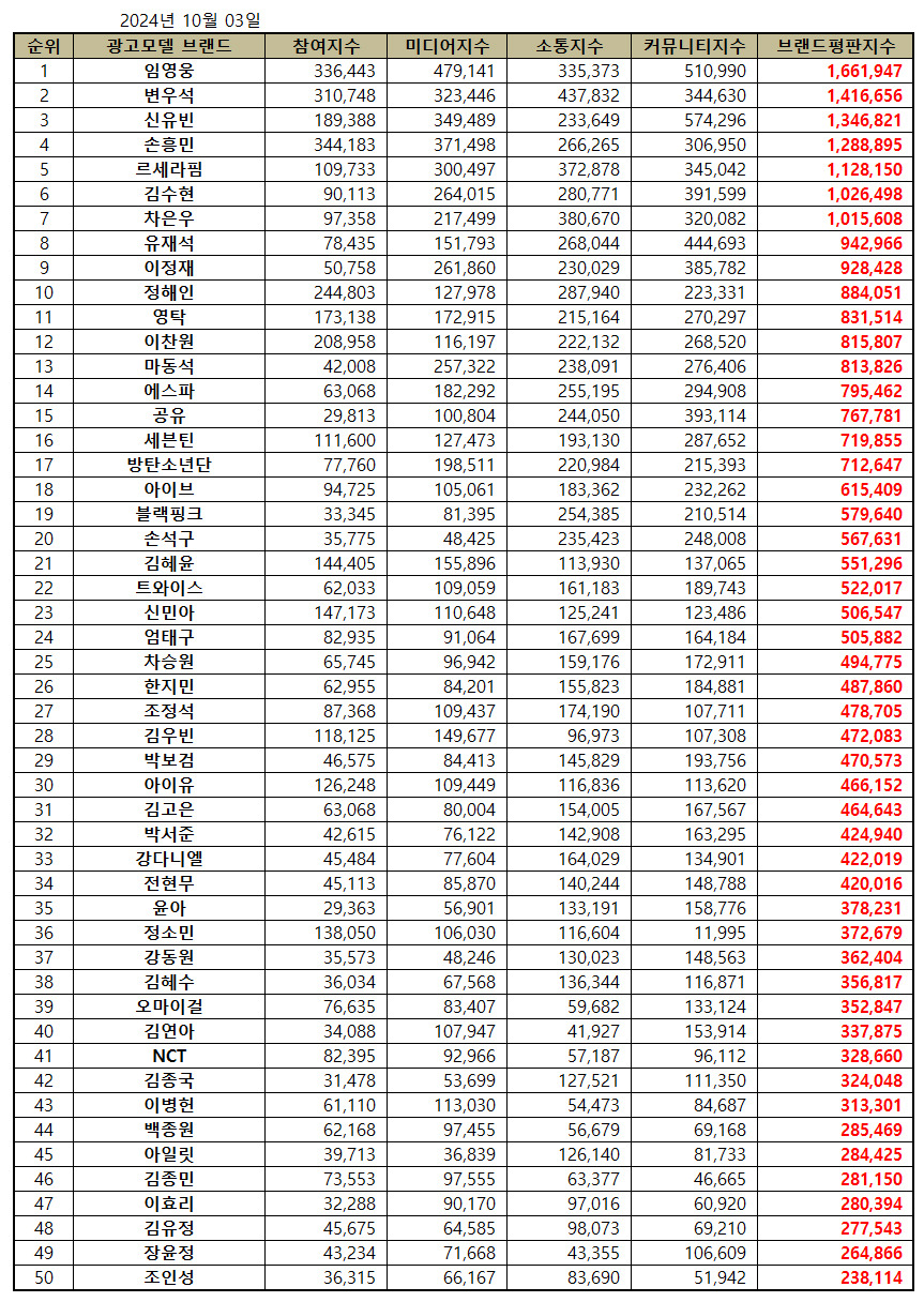 | `품절 대란 일으키는` 이찬원, 10월 광고모델 브랜드평판 12위 (0) | 2024.10.03 |
